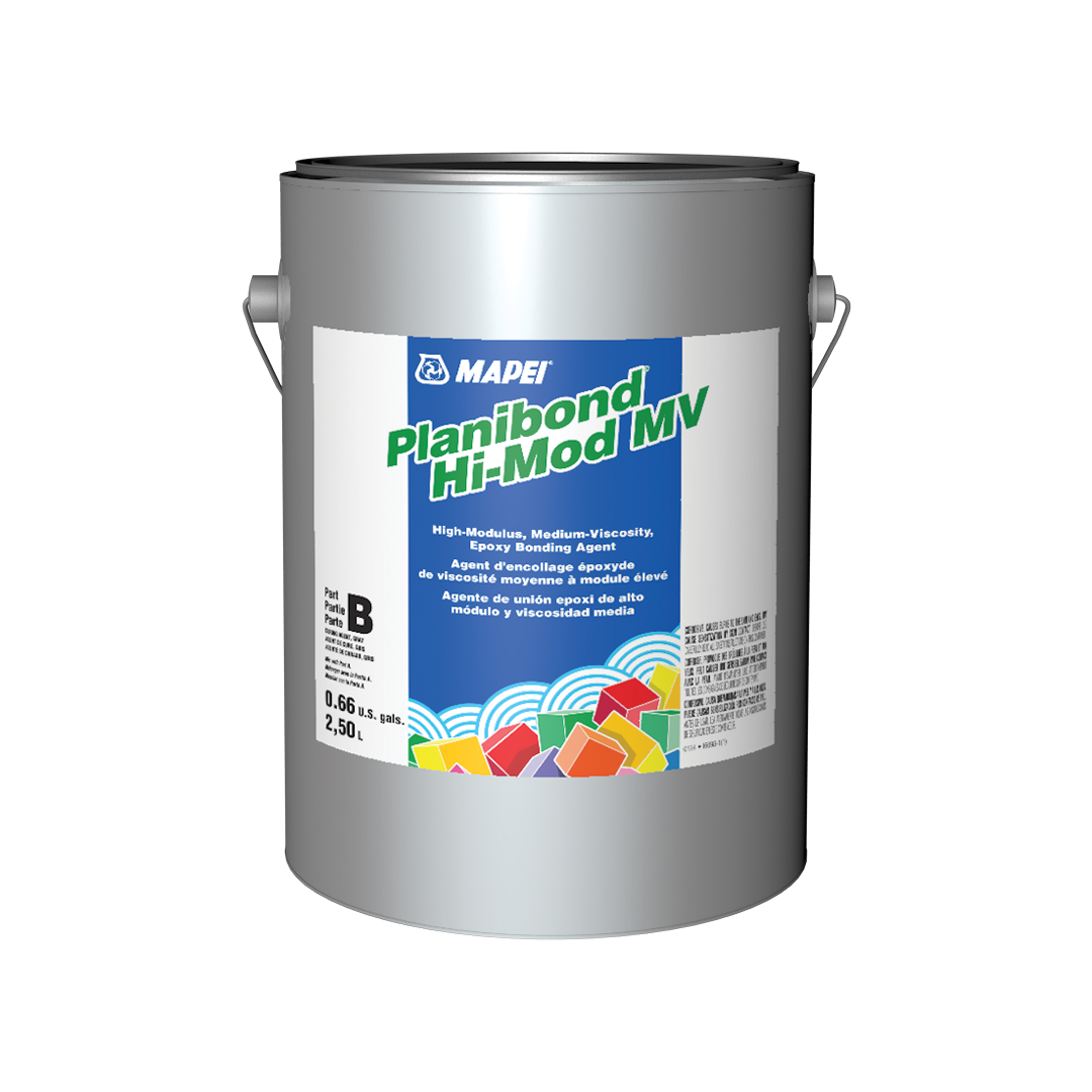 Planibond® Hi-Mod MV is a two-component, multipurpose, high-modulus, medium-viscosity, epoxy bonding agent. Planibond Hi-Mod MV is nonshrink, 100%-solids and moisture-tolerant. Itis used primarily as a bonding agent for screeds and repair mortars.