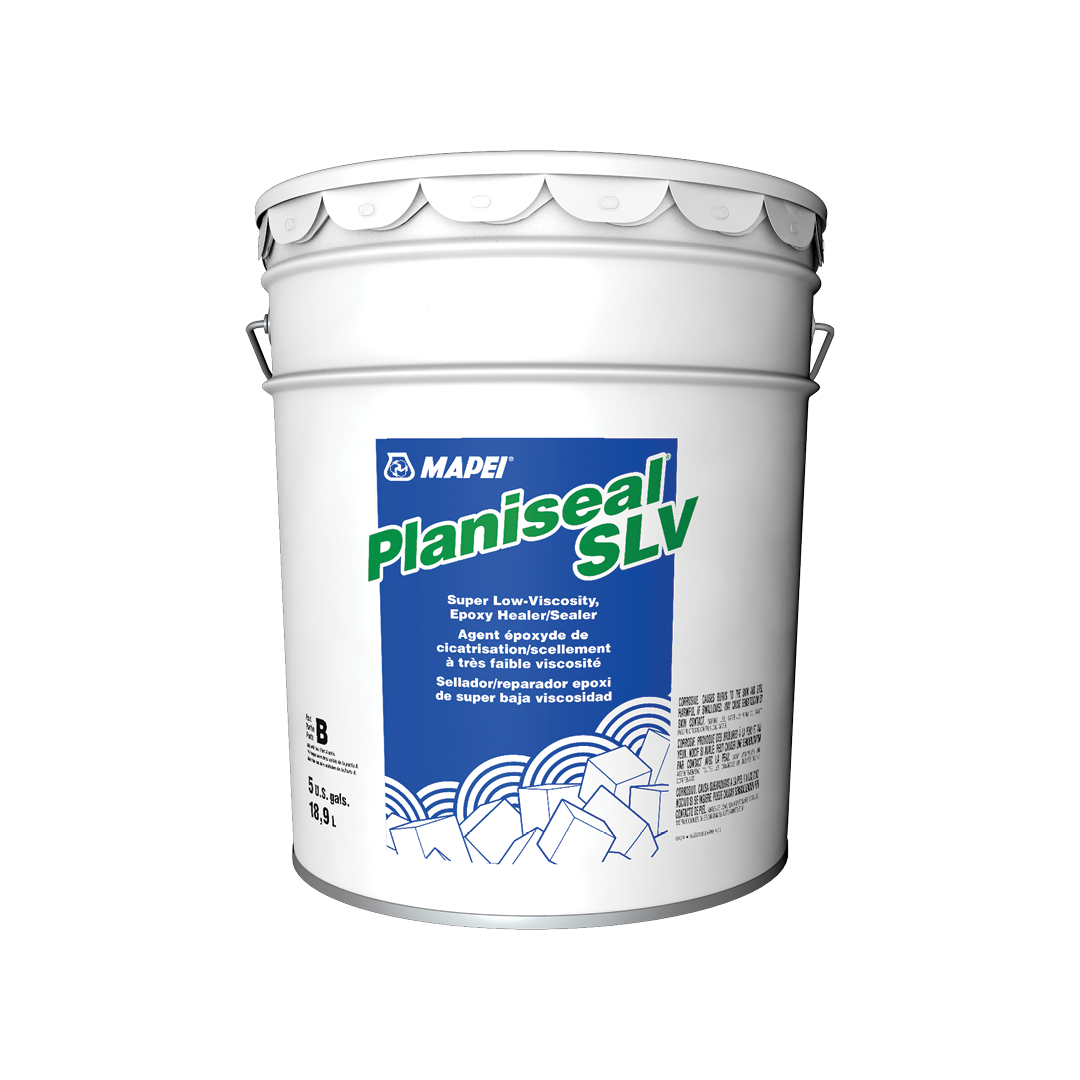 Planiseal SLV is a solvent-free, two-component, 100%-solids, low-modulus, super low-viscosity, epoxy healer/sealer designed to penetrate into hairline cracks of new or worn cracked concrete surfaces.